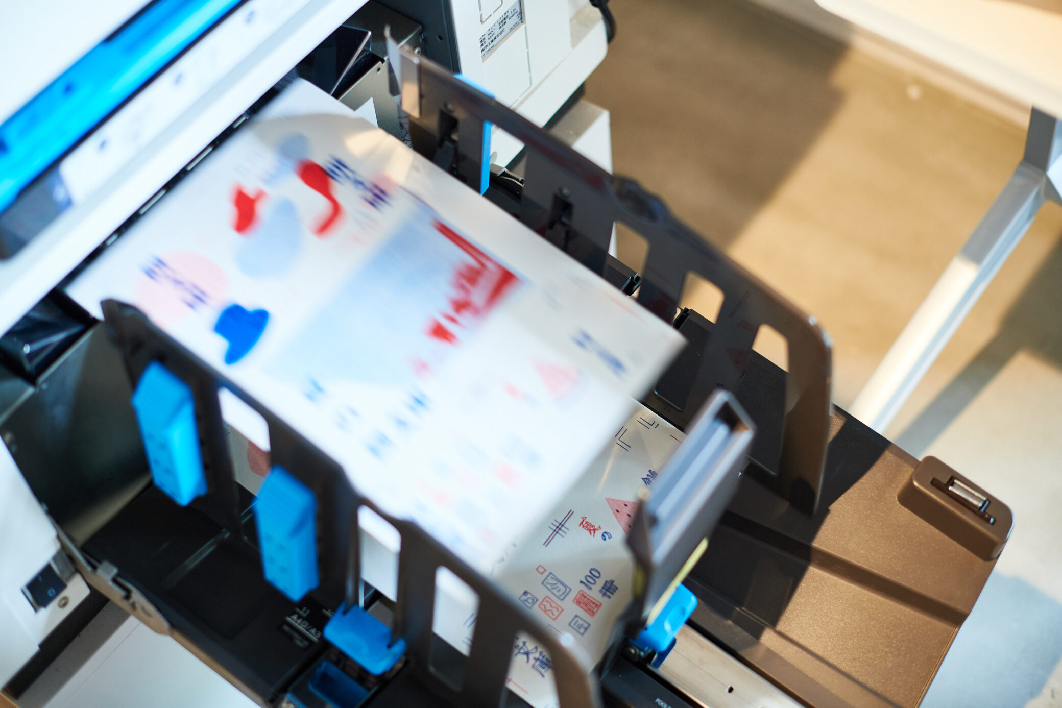 版ごとの位置を合わせたら、本番の用紙に印刷。この日、初めてリソグラフに触れた方はそのスピードに驚いていました。