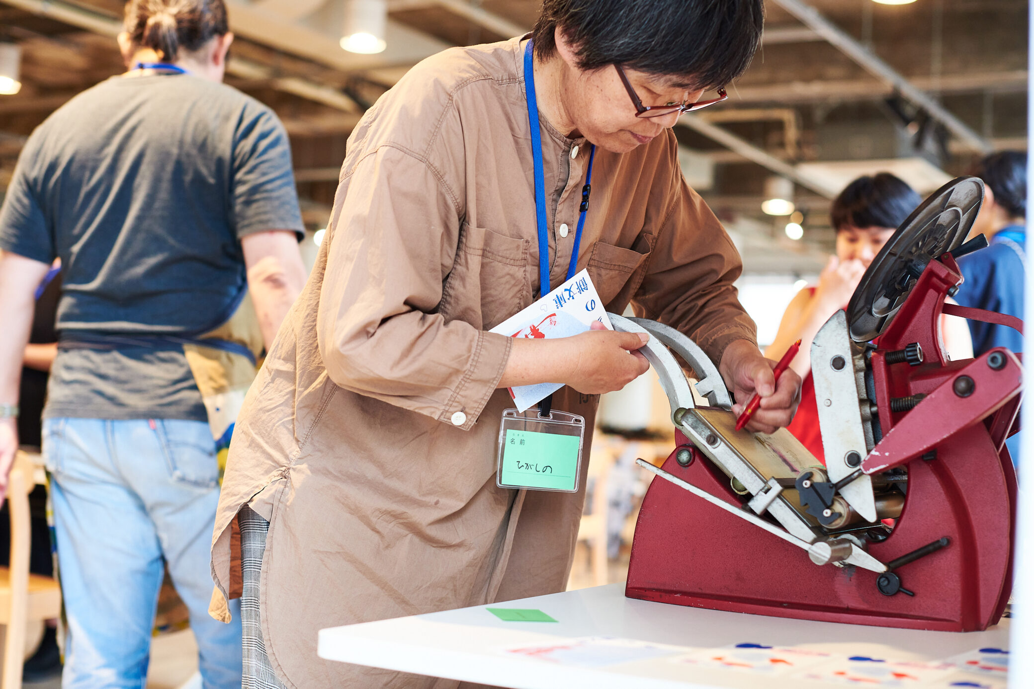 調整と試し刷りの工程を何度か繰り返し、その度に印刷位置が合っているか確認。活版を押す工程は参加者の皆さんがそれぞれ行いました。
