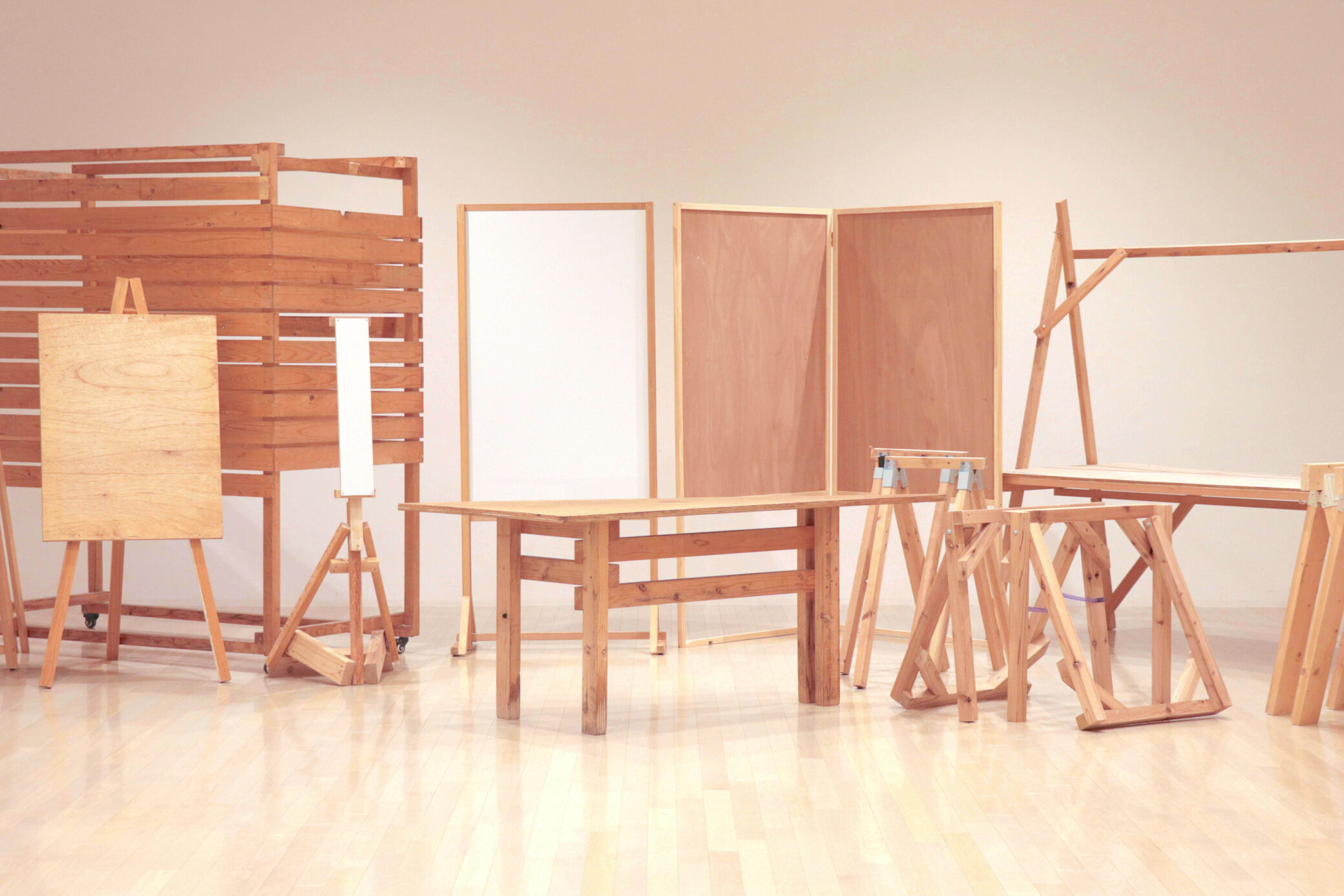 ◆文化創造館の家具をさらに使いやすくするために、解体した素材を組み合わせて新しい家具の試作します。