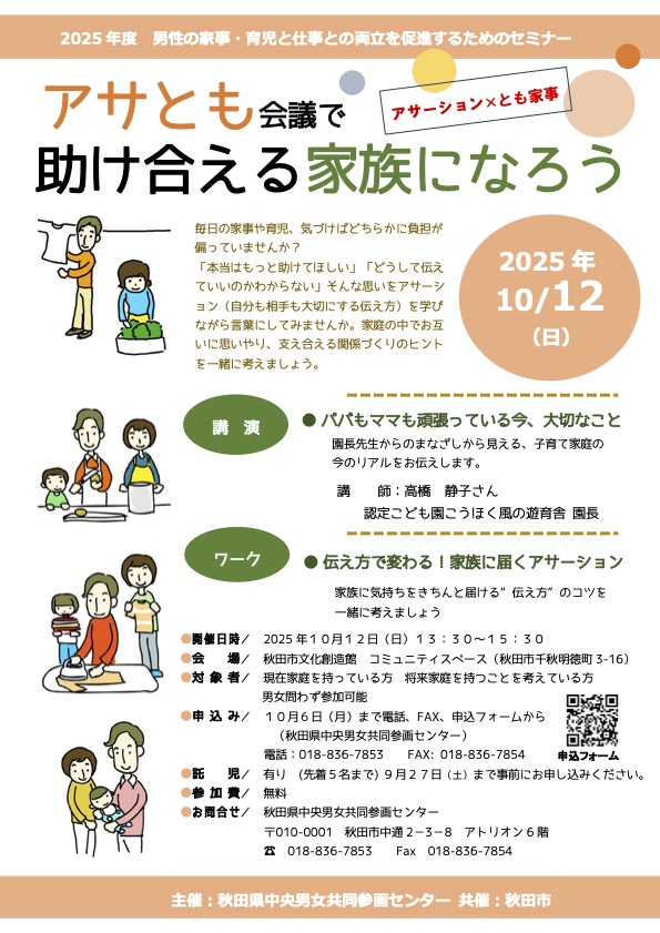 毎日の家事や育児、気づけばどちらかに負担が偏っていませんか? 「本当はもっと助けてほしい」「どうして伝えていいのかわからない」そんな思いをアサーション(自分も相手も大切にする伝え方)を学びながら言葉にしてみませんか。家庭の中でお互いに思いやり、支え合える関係づくりのヒントを一緒に考えましょう。
