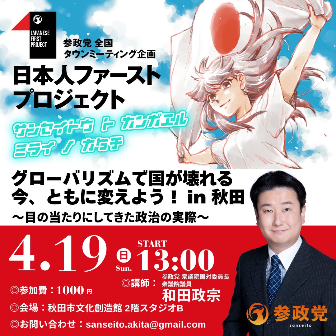 参政党 タウンミーティング in秋田「グローバリズムで国が壊れる 今、ともに変えよう!」