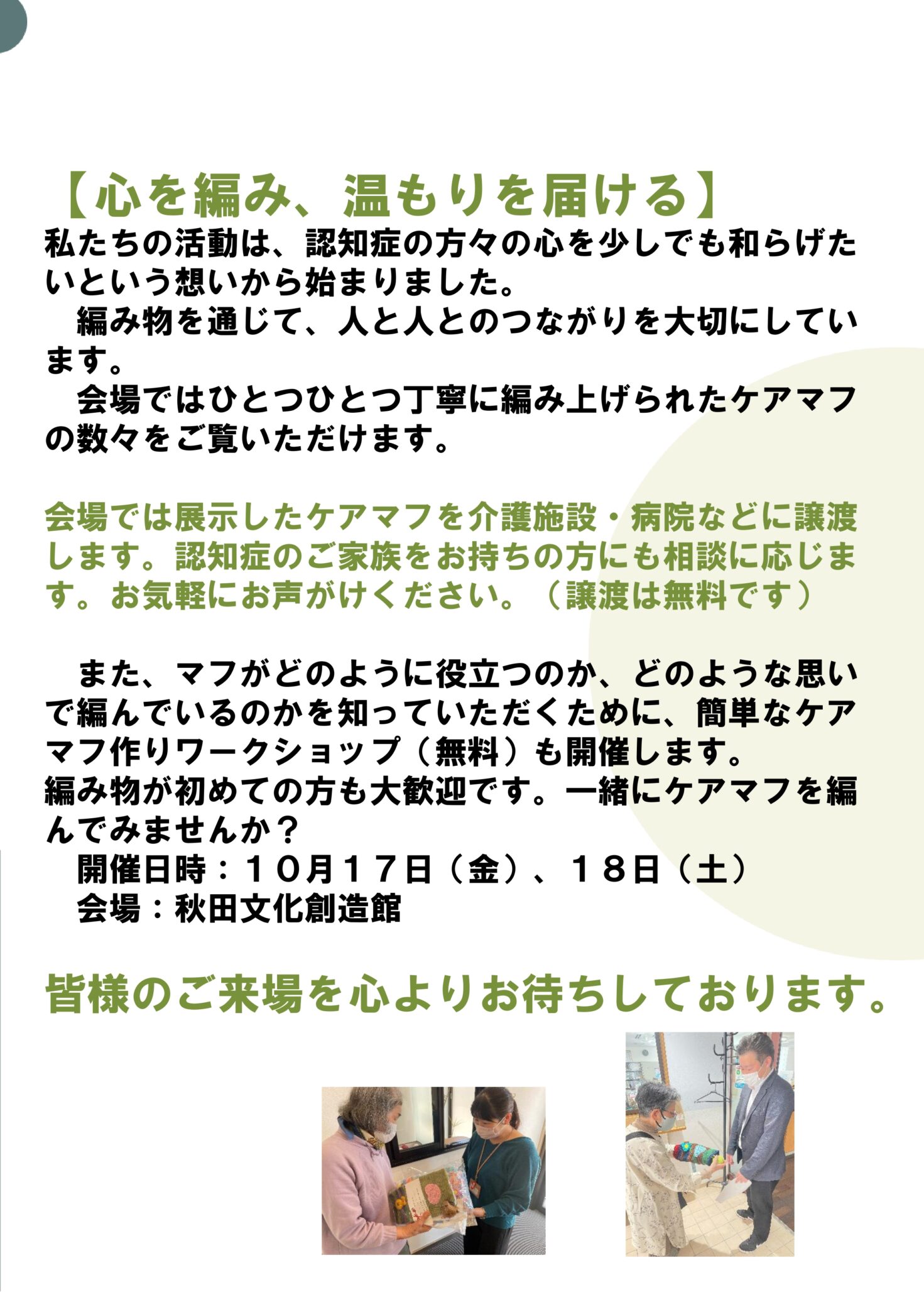 ケアマフの会 カミツレ 展示会・譲渡会