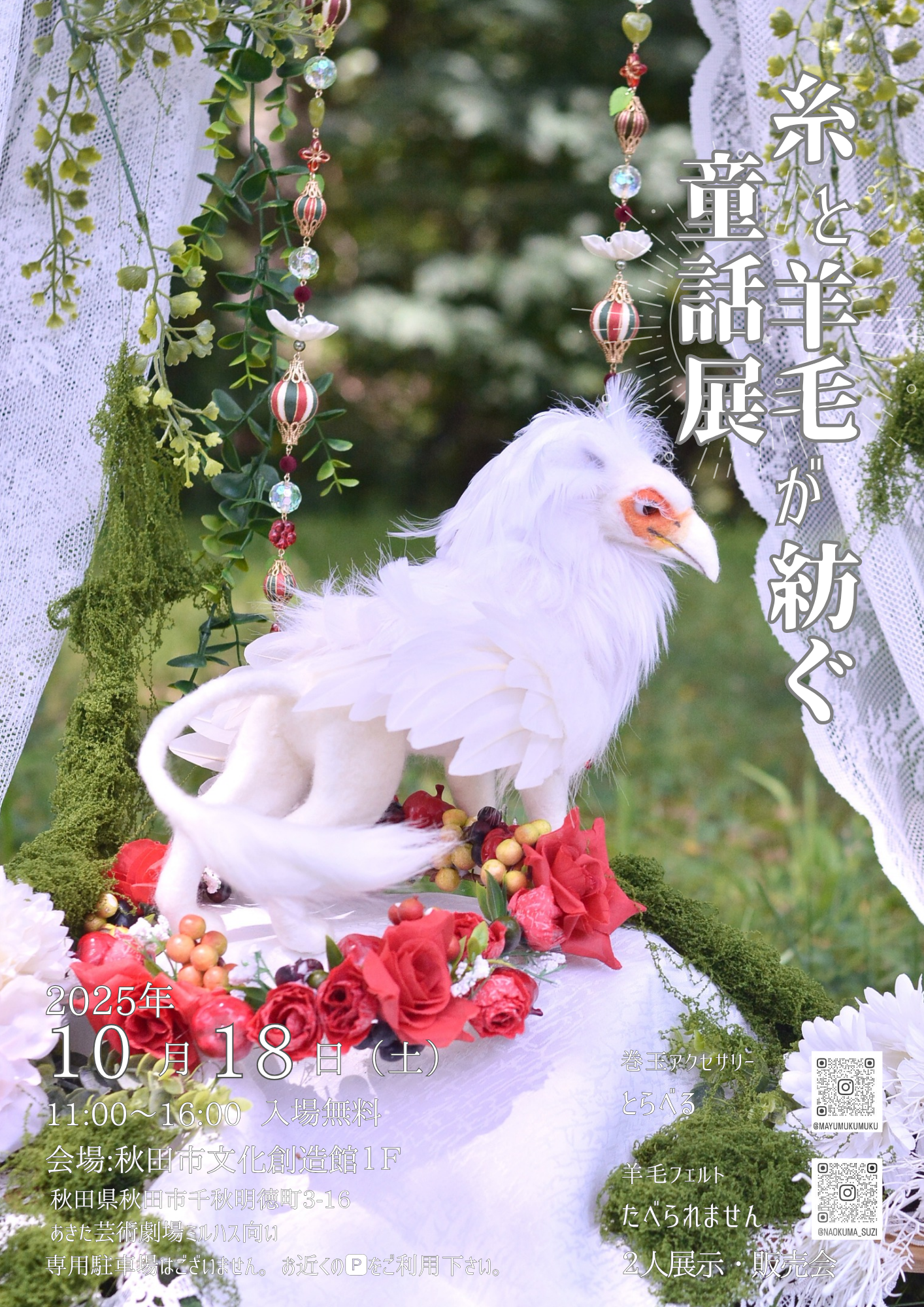 巻玉アクセサリー作家「とらべる」×羊毛アクセサリー作家「※食べられません」の展示・販売会です。今回のテーマは「童話」。おとぎ話に足を踏み入れたかのような世界観ー。童話をテーマに制作した巻玉アクセサリーの販売。童話に出てくる羊毛フェルトの動物たち。皆様の知ってる童話の世界へぜひ遊びに来てください。