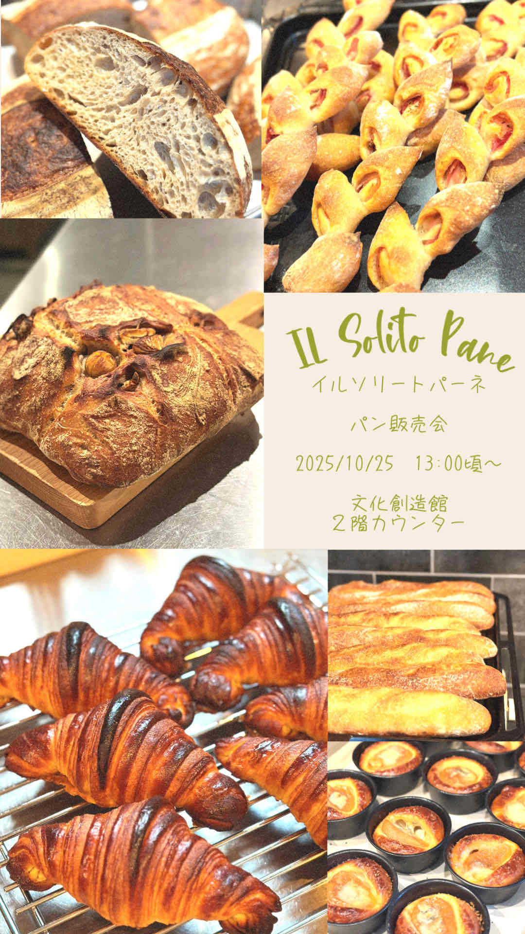店舗を持たない小さなパン工房、IL Solito Pane(イルソリートパーネ)のパン販売会です。お酒やお食事に合わせるハード系のパン、ブリオッシュなどバターをしっかりと使ったリッチなパンを販売いたします。