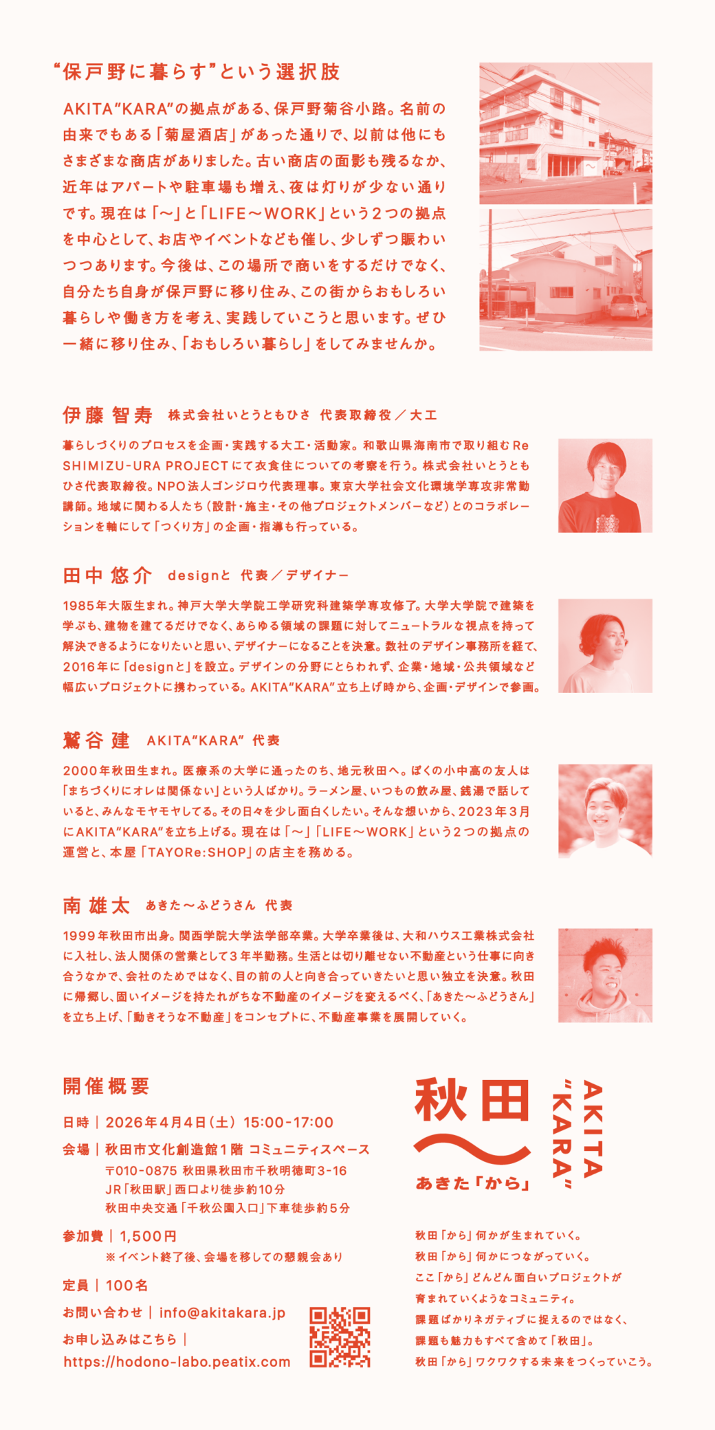 2023年「秋田”から”ワクワクする未来をつくっていこう」をコンセプトにはじまったAKITA”KARA”。2025年には、秋田市保戸野に、「〜」と「LIFE〜WORK」という2つの拠点をつくりました。