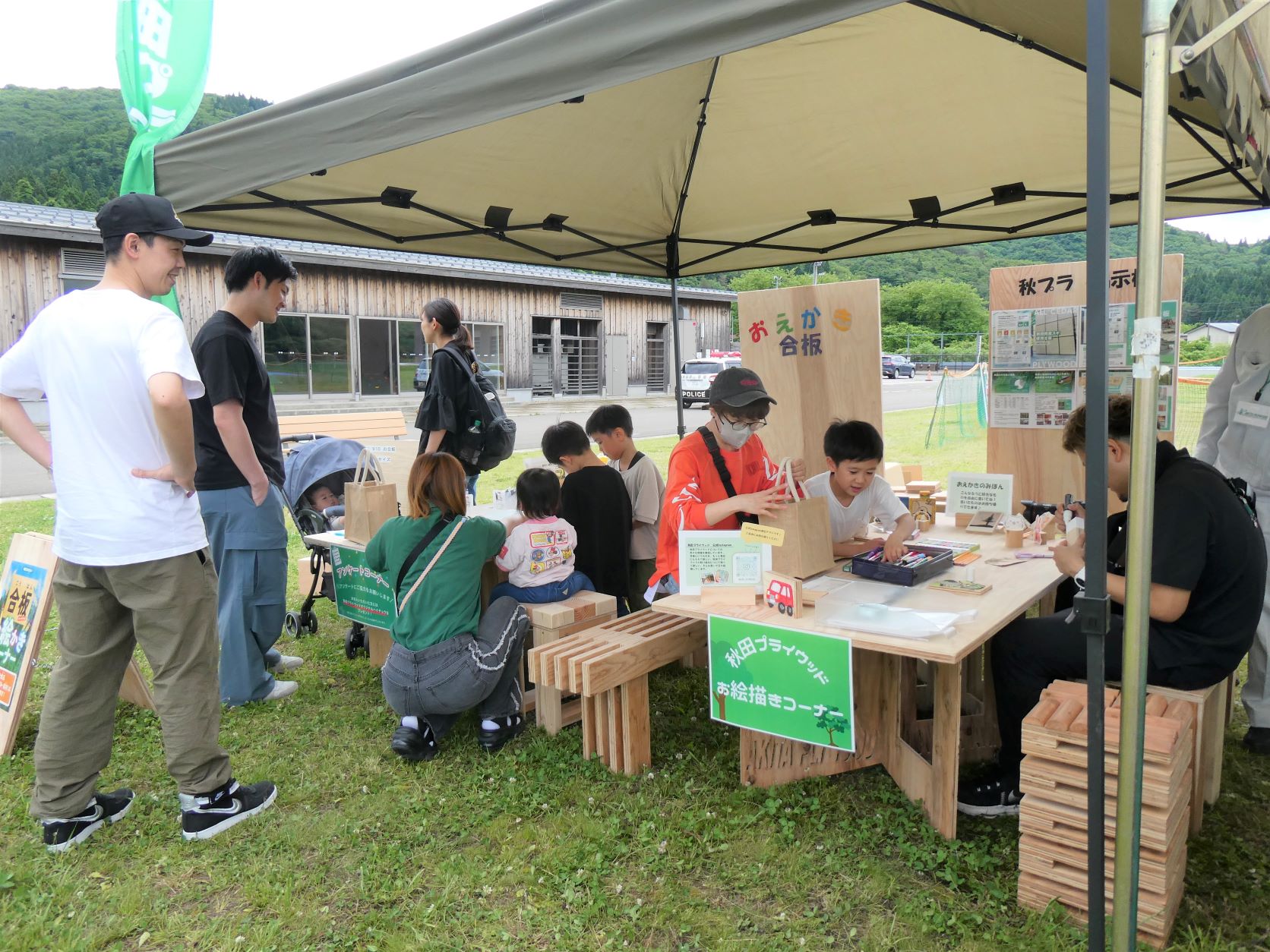 ワークショップブースでは子どもから大人まで楽しめる、秋田杉をつかった『剥き芯ボウリング』や木材端材を使用した『お絵描きコーナー』をオープンしています!