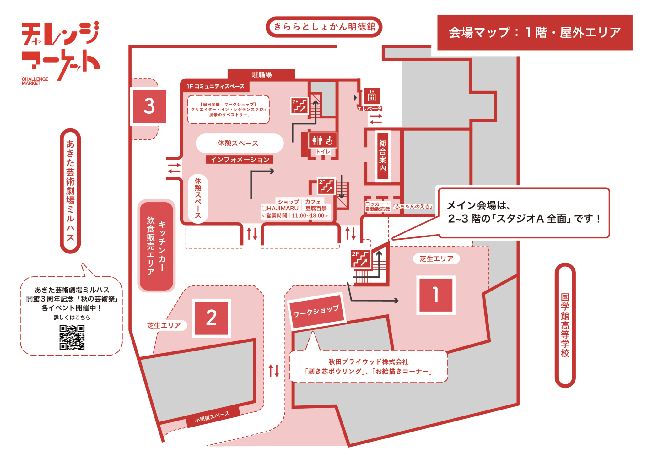 ●会場:秋田市文化創造館 2階スタジオA1・A2、3階スタジオA3、屋外エリアほか
