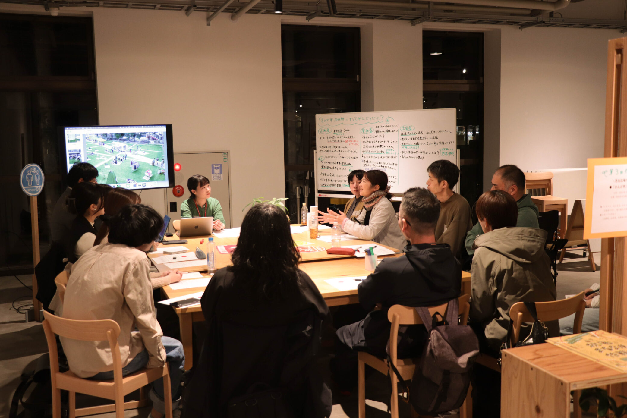 :「さんど市」についての振り返りと、「駅前空間の活用をより良くするための工夫やサポート」をテーマに、次につながるアイデアや気づきを共有しました。